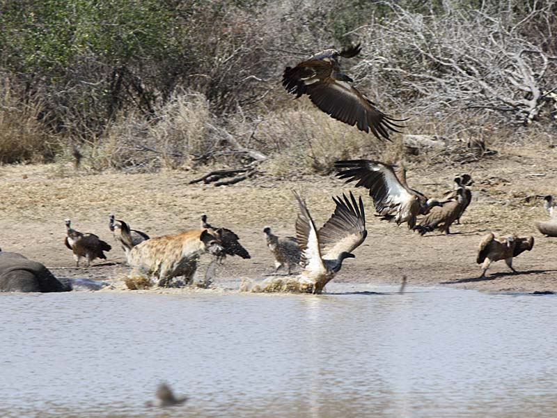 Got nice and close to rhino, some more giraffe and the staple diet of all predators here, the impala (about 130,000 of them in the park, so plenty of fast food for lions! The game rangers say the little white M on their behinds stands for MacDonalds, and if you turn it over the W is for Wimpy!). Also saw Zebra, kudu and waterbuck. Heather and Erica went for a walk around camp in Skukuza and watched buffalo munching on river weed about 30 meters from the fence. Skukuza is the main camp in Kruger, with a bank, two restaurants, a shop, a museum and a filling station. It’s like a little town.